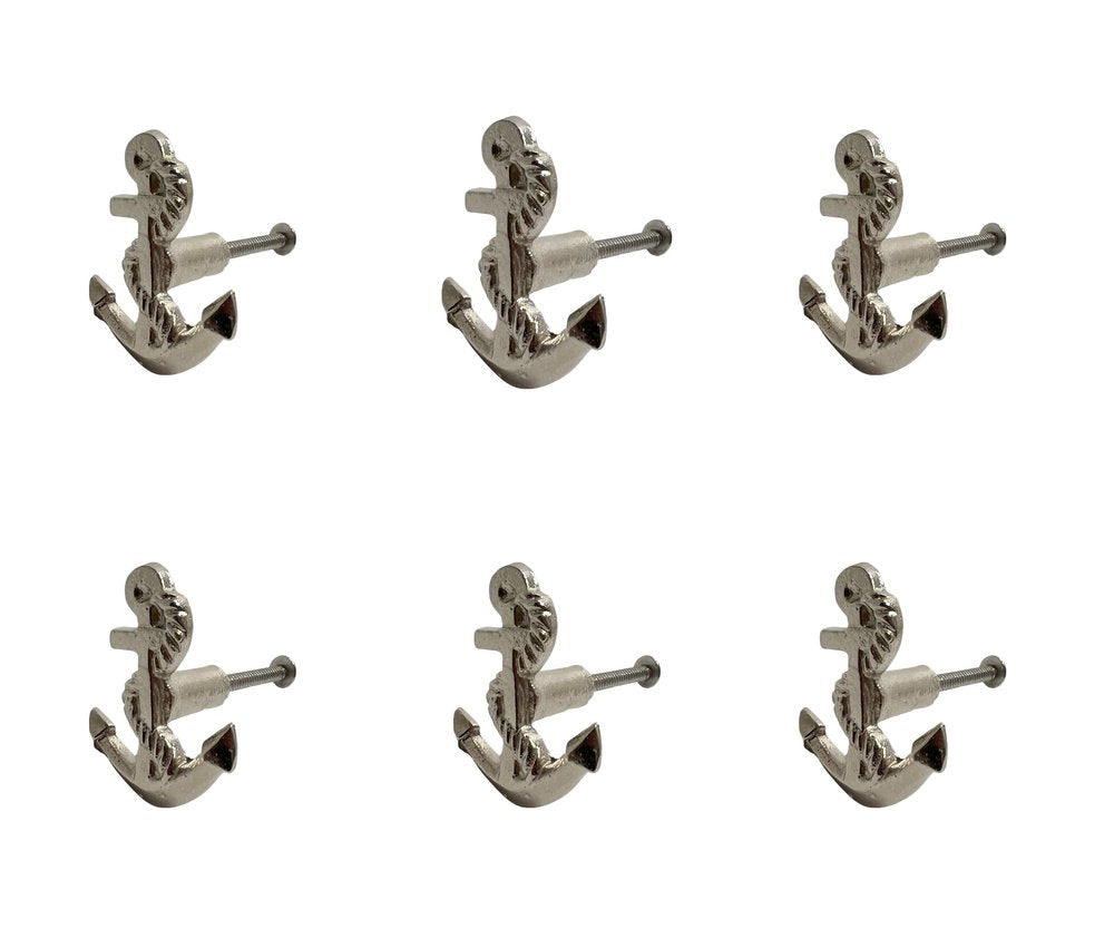 Set of Six Silver Nautical Anchor Metal Drawer Pull Knobs