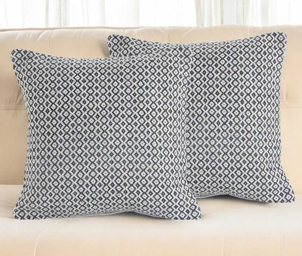 The perfect complement to your sofa, favorite chair, or bed, this set of two blue geometric cotton throw pillows is a great decorative accent. Ultra durable blue cotton has been used to make this decorative pillow set a beautiful look that will stand the test of time. For anyone that loves to decorate or accent their space with color and texture. Decorative pillows are a great way to change up the look and feel of your space easily and quickly. 18-inch H x 18-inch W x 4-inch D