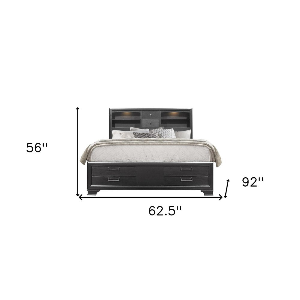 Update and anchor your room in style with the fabulous solid wood queen gray eight drawers bed. For hidden storage and convenience, this great bed includes 8 drawers to stow your clothing and necessities. The versatile rectangular bookcase style headboard gives this bed easy access storage and display that is convenient and fashionable. Built to last, this piece not only looks good but reflects high quality craftsmanship from top to bottom. This bed is the perfect way to make your bedroom comfortable and inviting. 56" H x 62.5" W x 92" D
