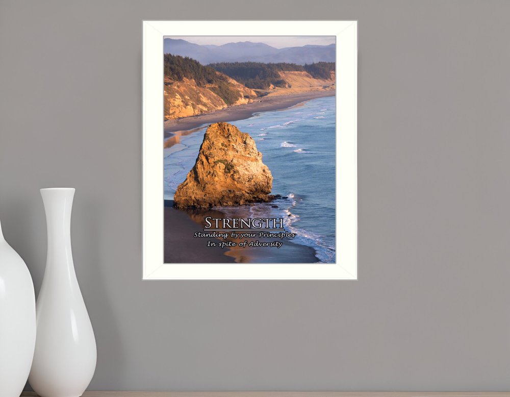 This strength 5 white framed print wall art will add a beautiful decorative accent to your decor. This print is a visual artistic expression that allows you to decorate your space in style. Reproduced for you on paper, this hanging decorative accent will be a trendy and fashionable way to dress your walls. Adding this hanging wall art to your space to make your room feel more finished and attractive. Instantly liven up your space with this art that brings color and dimension to your walls. 14-inch H x 18-inch W x 1.5-inch D