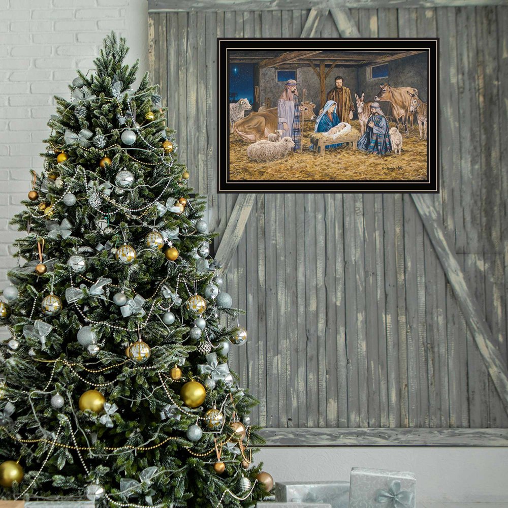 This the greatest gift of all - the birth of Christ black framed wall art is a great way to celebrate and decorate for the holidays. This acrylic painting is a way to express your artistic style and add some fashion to your walls. Reproduced for you on paper, this hanging decorative accent will be a trendy and fashionable way to dress your walls. Adding this hanging wall art to your space to make your room feel more finished and attractive. Instantly liven up your space with this art that brings color and dimension to your walls. 21-inch h x 30-inch w x 1-inch d.