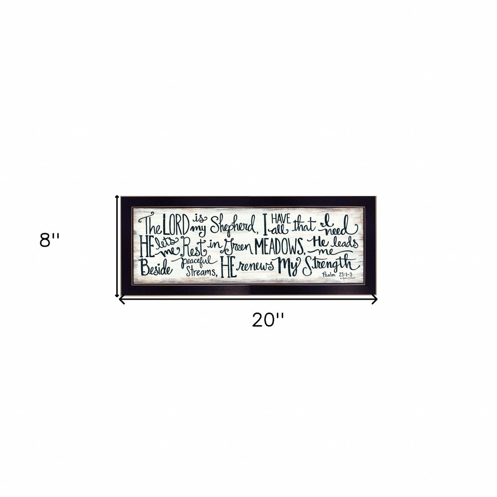 Unique and decorative, this the lord is my shepherd 1 black framed print wall art will leave a lasting impression. This print is a visual artistic expression that allows you to decorate your space in style. Reproduced for you on paper, this hanging decorative accent will be a trendy and fashionable way to dress your walls. Adding this hanging wall art to your space to make your room feel more finished and attractive. Instantly liven up your space with this art that brings color and dimension to your walls. 8-inch H x 20-inch W x 1-inch D