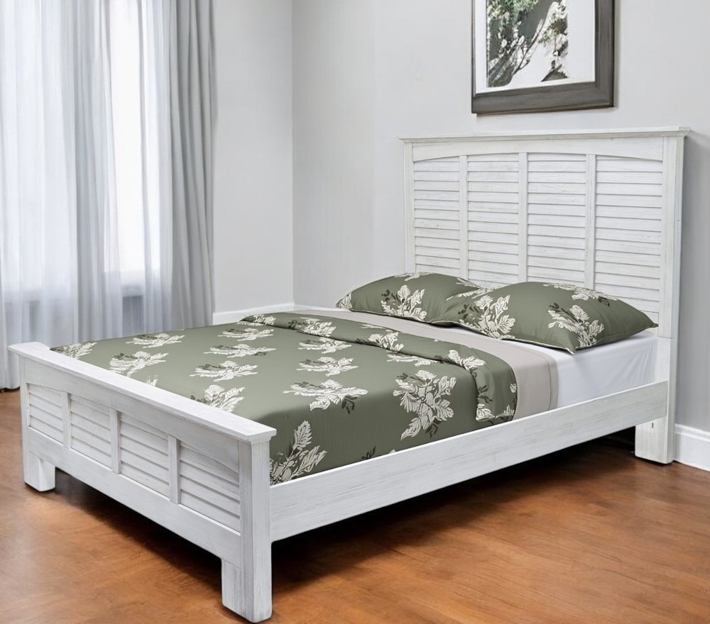 White Plantation Shutter Distressed Solid Wood Queen Bed Frame