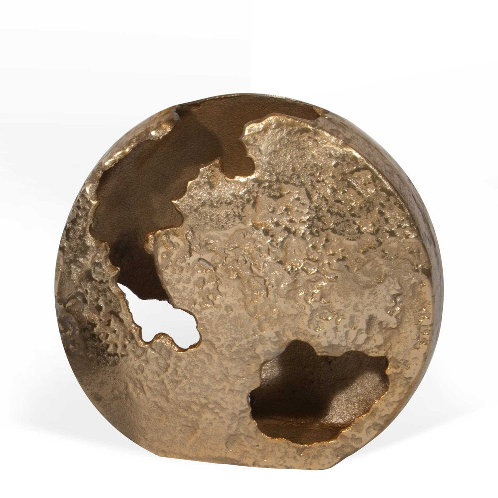 The 12-inch gold hammered round aluminum table vase is a stunning addition to any decor. Its round shape beautifully complements floral arrangements, adding elegance to your living space. Crafted from durable aluminum, this vase features a unique distressed metal finish that enhances its modern aesthetic. The rich gold color adds a touch of luxury, making it an eye-catching centerpiece on any table. Perfect for highlighting your favorite blooms or as a standalone piece, this vase effortlessly combines functionality with style. Whether in your home or office, it elevates your decor while showcasing your personal taste. Embrace a sophisticated look with this exquisite table vase and transform any room into a chic haven. 12-inch h x 11-inch w x 4.3-inch d.