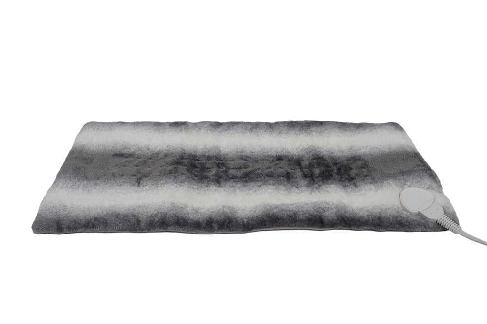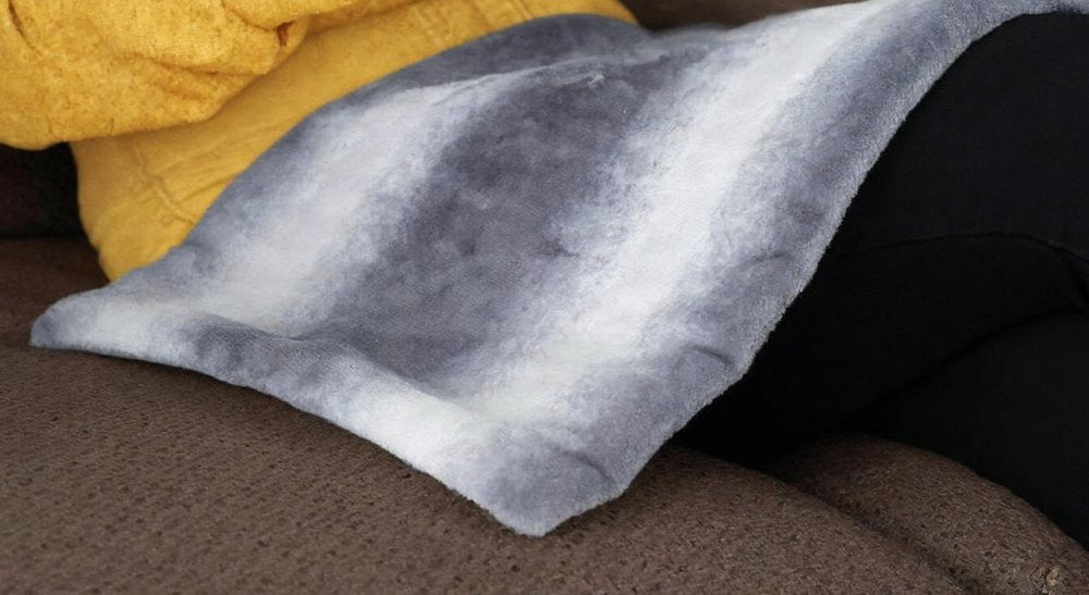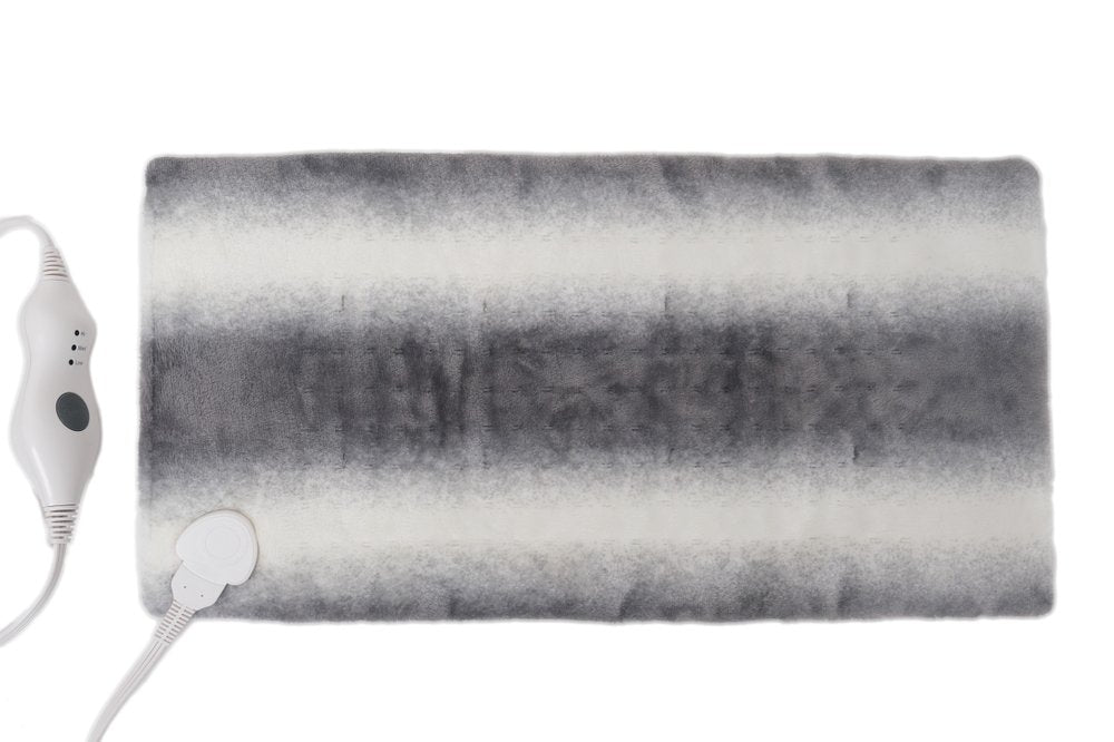 Get some therapeutic heat relief with this fashionable 12-inch x 24-inch gray ombre faux fur heated plush lap pad. Designed to deliver even heat to soothe cramps, back pain, and sore muscles while enhancing blood circulation for quicker relief. This ultra-soft plush blanket is designed for ultimate softness. For peace of mind, safety, and convenience, this blanket includes an electric plug-in power wired controller with an auto shut off that protects from overheating. Covered with soft and cozy plush faux fur, this pad is the perfect size for abdomen, neck, or low back. 24-inch h x 12-inch w x 1-inch d.