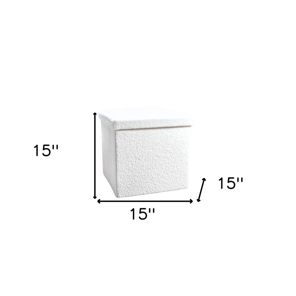 Get ready to relax with this 15-inch black boucle cube storage ottoman. Designed to discretely add hidden storage to your room without sacrificing seating or footrest space. The upholstery top of this ottoman is a nice contrast to the upholstery material. Expertly upholstered with padding in a soft solid color boucle, this ottoman is as comfortable as it is good looking. Ottomans are multi-functional additions to your space that add fashion and practical value. 15-inch h x 15-inch w x 15-inch d.