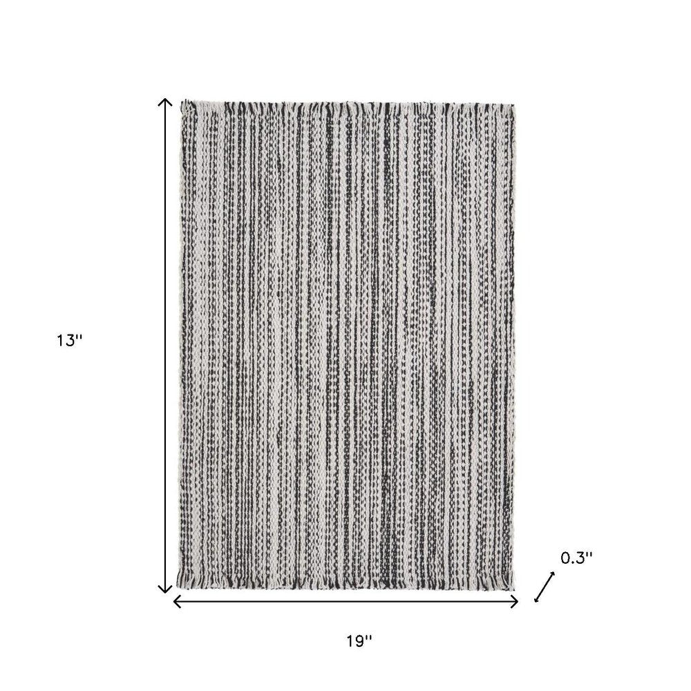 19-inch set of four black and white striped cotton placemats brings a touch of elegance to your dining experience. These rectangular placemats are handmade from high-quality cotton, ensuring both durability and style. The modern black and white striped design complements any table setting, making every meal a special occasion. Each placemat is designed to resist wrinkles, keeping your dining area looking pristine and polished. This set includes four pieces, perfect for family gatherings or intimate dinners. Add a modern yet casual flair to your table decor with these versatile placemats that effortlessly blend functionality and aesthetics. 13-inch h x 19-inch w x 0.3-inch d.