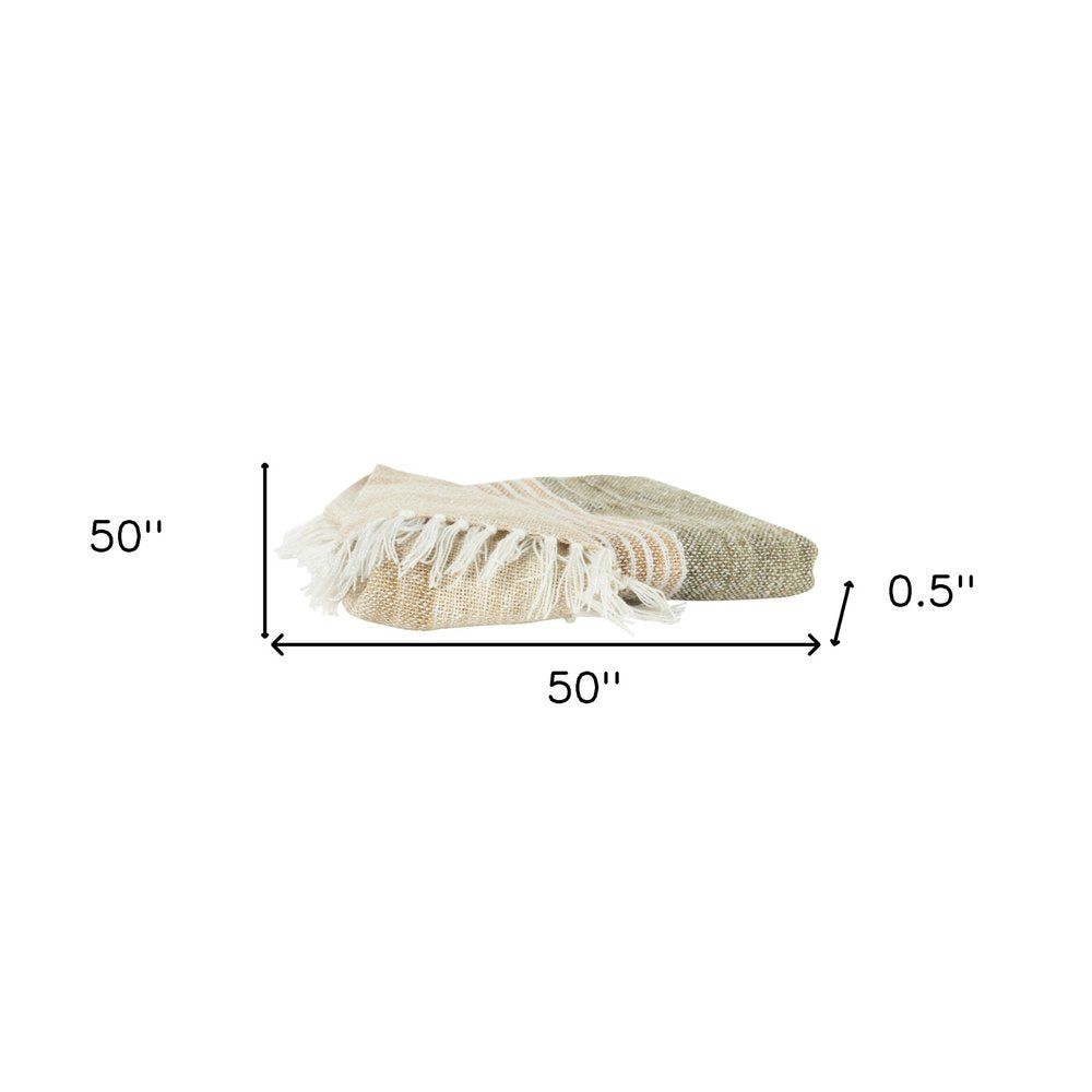 50" X 60" Beige Brown And Ivory Recycled Poly PET Striped Throw Blanket with Tassels
