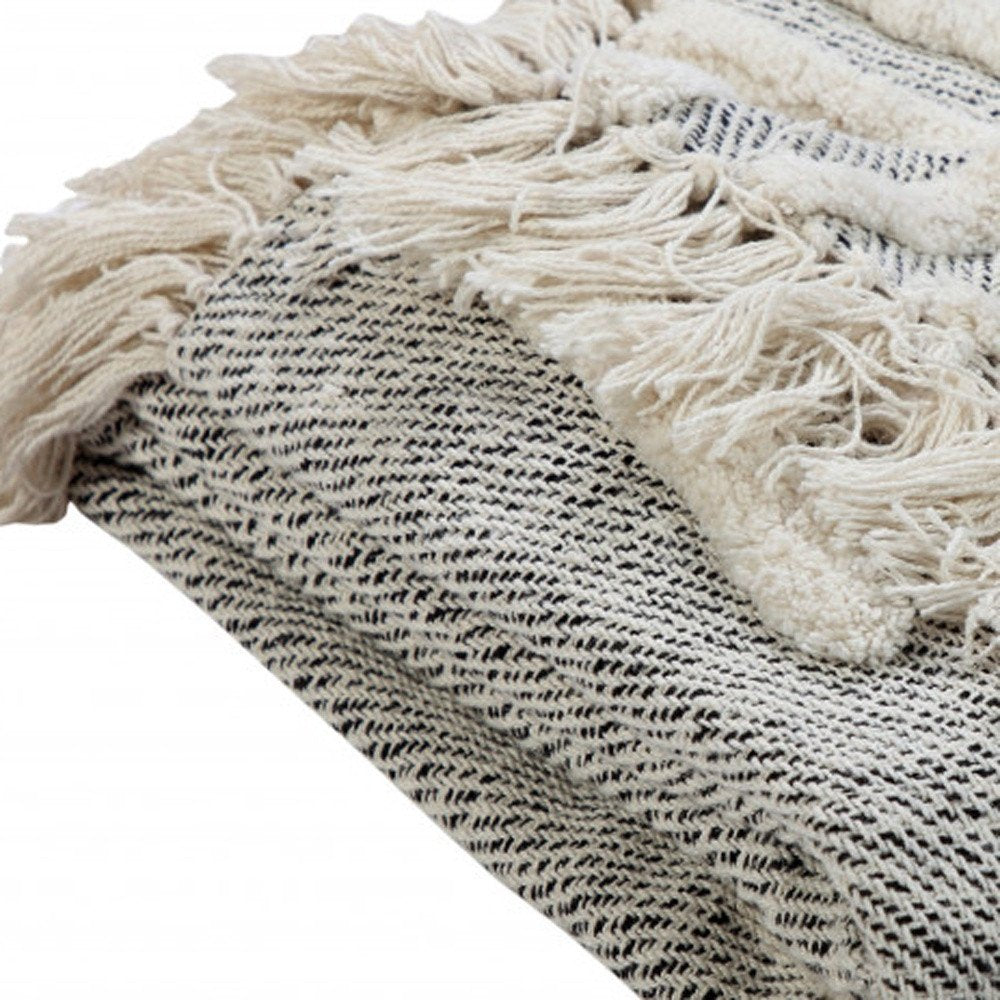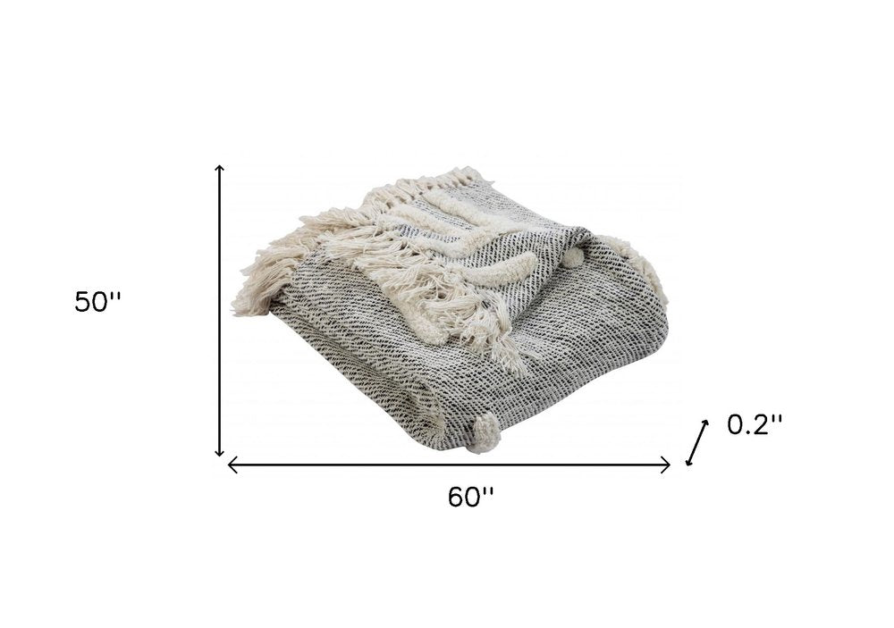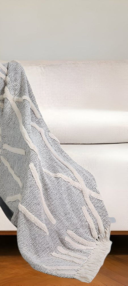 50" X 60" Black and Gray Woven Cotton Geometric Throw Blanket with Fringe