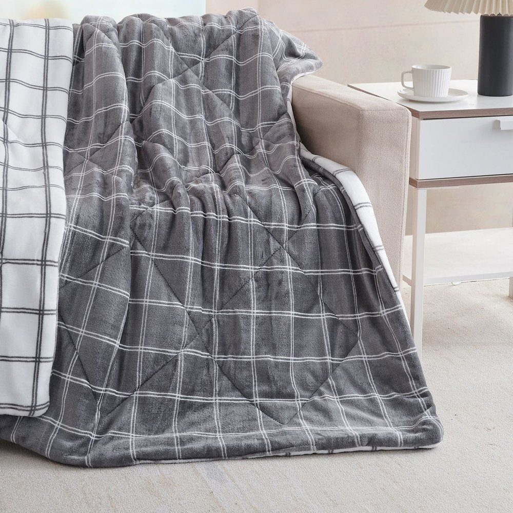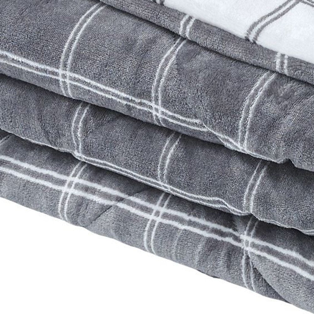 50" X 60" Gray and White Velvet Quilted Plaid Plush Throw Blanket