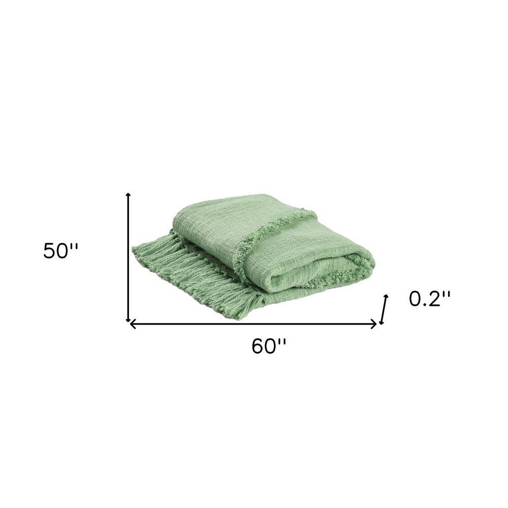 50" X 60" Green Woven Cotton Throw Blanket with Fringe