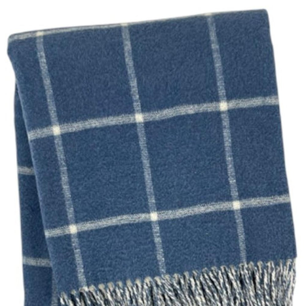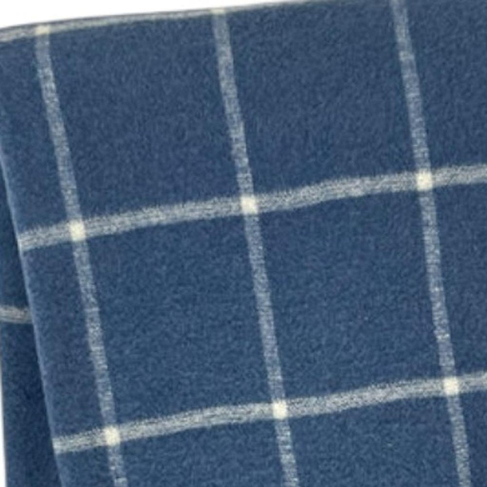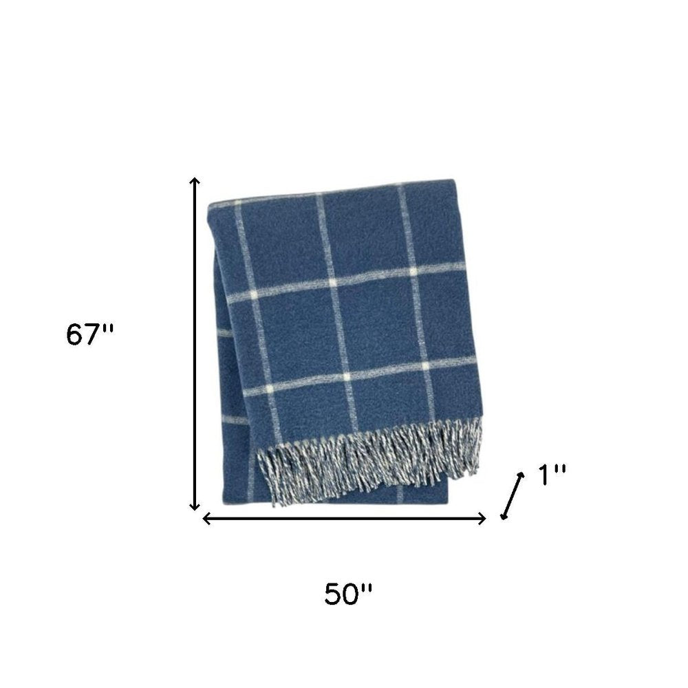 50" X 67" Denim Blue And White Cotton Blend Woven Plaid Throw Blanket with Fringe