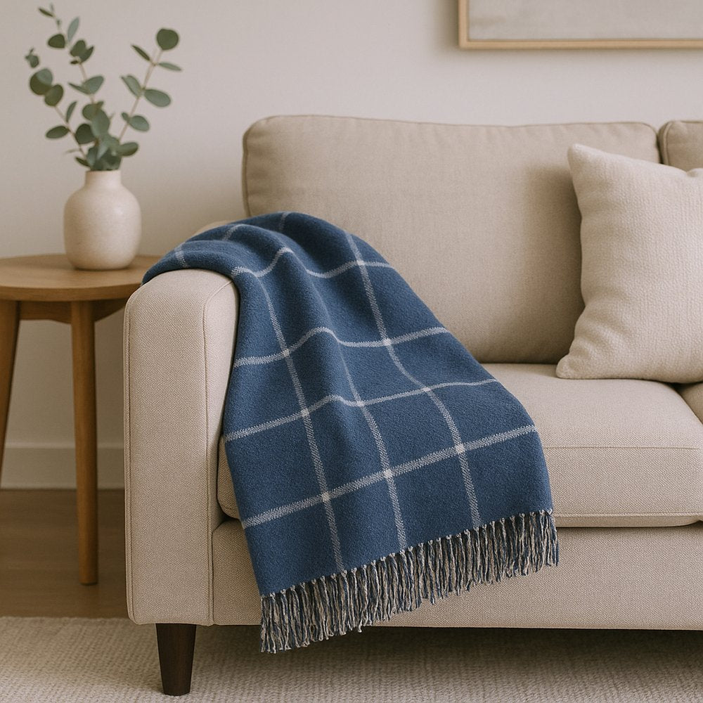 This 50-inch x 67-inch denim blue and white cotton blend woven plaid throw blanket with fringe is the perfect accent you've been searching for. Features a woven plaid design that offers sumptuous softness and texture that you'll cherish for years to come. Made from cotton blend this blanket will make a great addition to any room it's added to. Add extra texture to your decor and turn your room into an inviting space. This cozy throw blanket makes the perfect add-on to movie nights and lazy afternoons. 67-inch h x 50-inch w x 1-inch d.