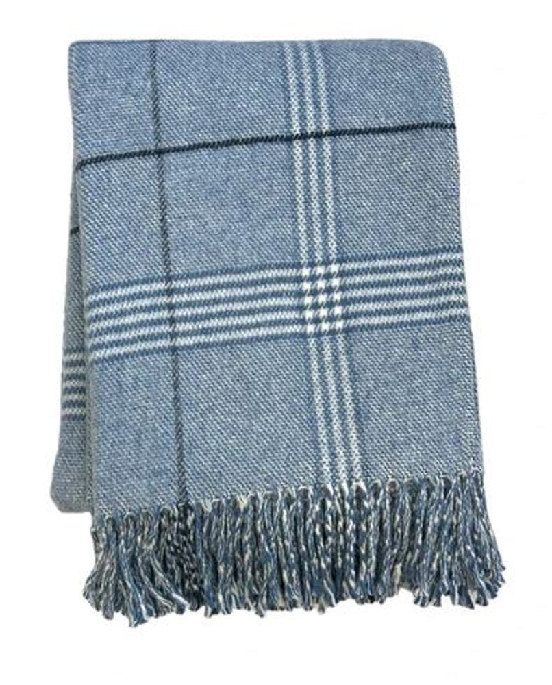Whether you're curling up for movie night or you need an extra layer of warmth as you drift off to sleep, this 50-inch x 67-inch denim blue and white polyester and cotton woven plaid throw blanket with fringe is the perfect solution. Features a woven plaid design that offers sumptuous softness and texture that you'll cherish for years to come. Made from polyester and cotton this blanket will make a great addition to any room it's added to. Add extra texture to your decor and turn your room into an inviting space. This cozy throw blanket is sure to become your go-to couch companion. 67-inch h x 50-inch w x 1-inch d.