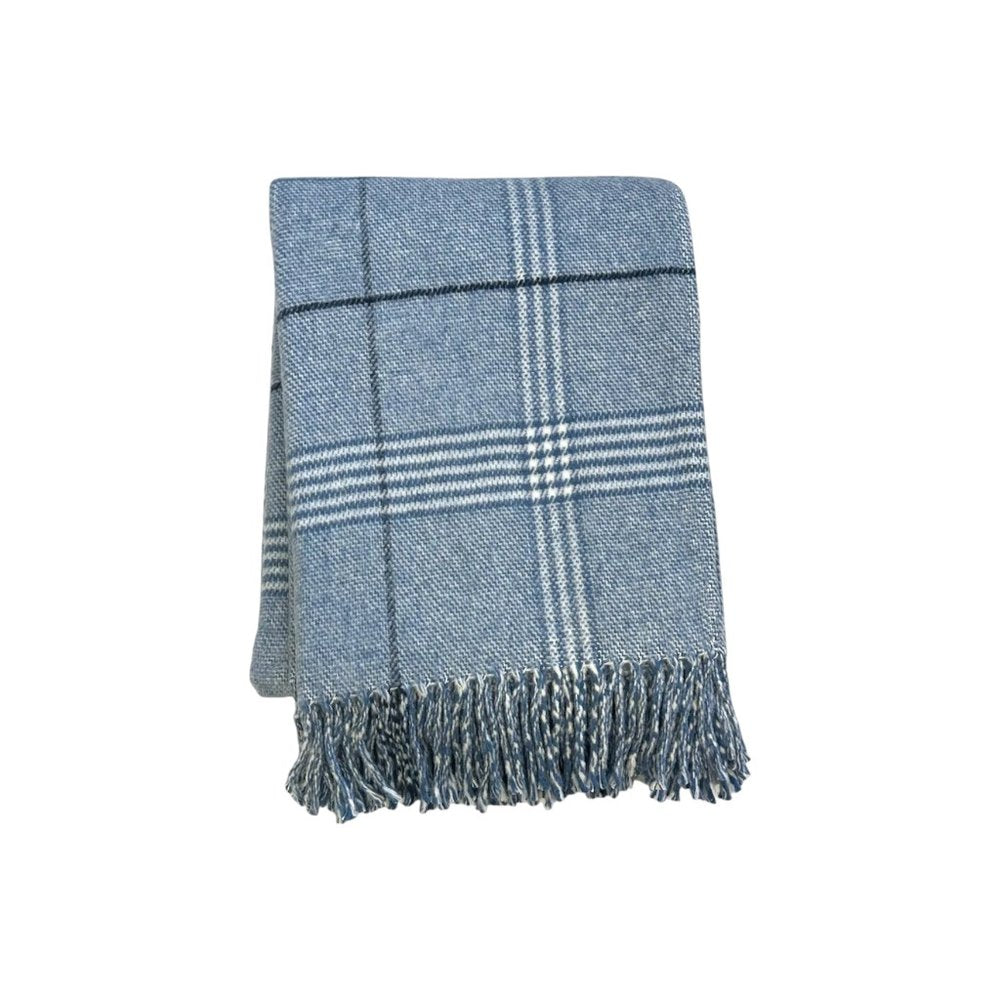 | Keywords | cotton woven plaid throw blanket, woven plaid throw blanket, woven plaid throw blanket fringe, white polyester cotton woven plaid, 50" X 67" denim blue white polyester |