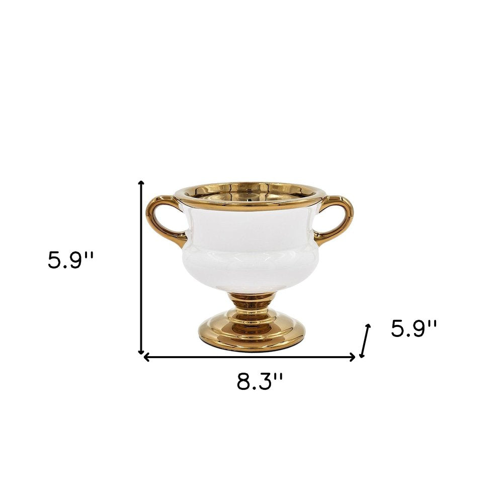 6" White And Gold Amphora Ceramic Table Vase