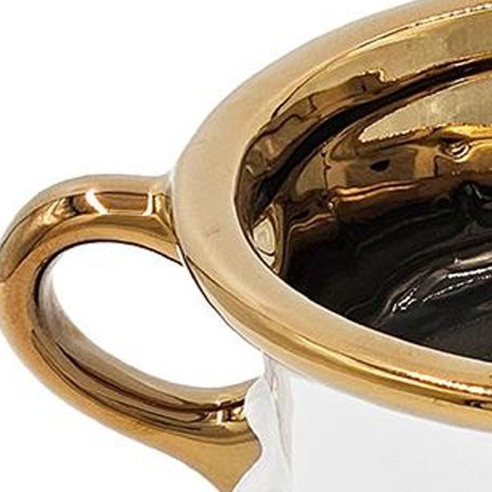 The 6-inch white and gold amphora ceramic table vase is a stunning addition to any decor. Featuring an elegant amphora shape, this vase adds a touch of sophistication to your home. Crafted from high-quality ceramic that features a striking enamel and electroplated white and gold finish that brings a modern flair to your space. Perfect for displaying flowers or as a standalone decorative accent, this vase is sure to capture attention. Enhance your living space with this exquisite table vase that balances beauty and functionality gracefully. 5.9-inch h x 8.3-inch w x 5.9-inch d.