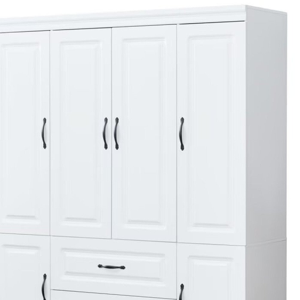 This 72-inch white six door two drawer combo dresser is a practical and good-looking accent for your bedroom storage and organizational needs. This combo dresser gives you the added bonus of both drawer storage and cabinet storage to accommodate various sizes and types of items. This dresser is made from sturdy manufactured wood that is built to last. The white coloration of this piece is neutral and will blend easily with most any decor. 72-inch h x 63-inch w x 20.3-inch d.