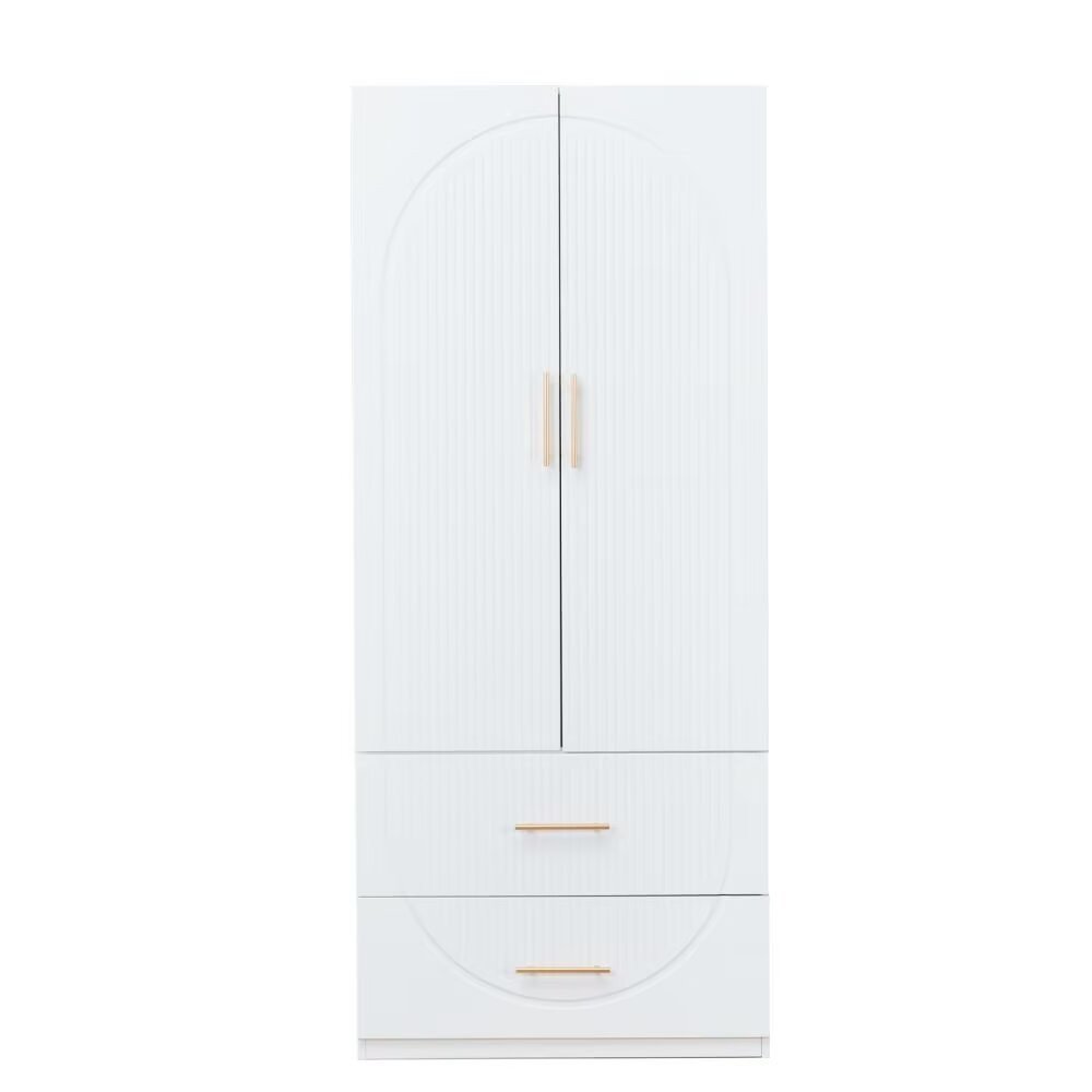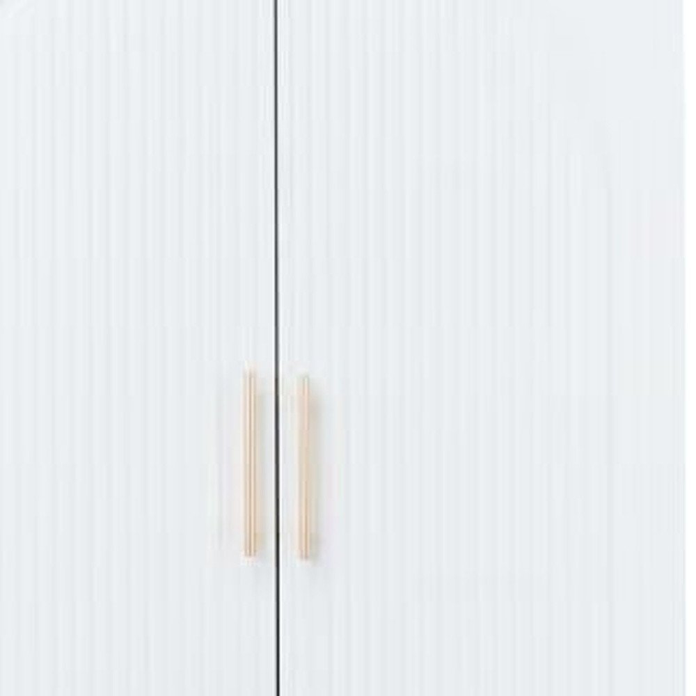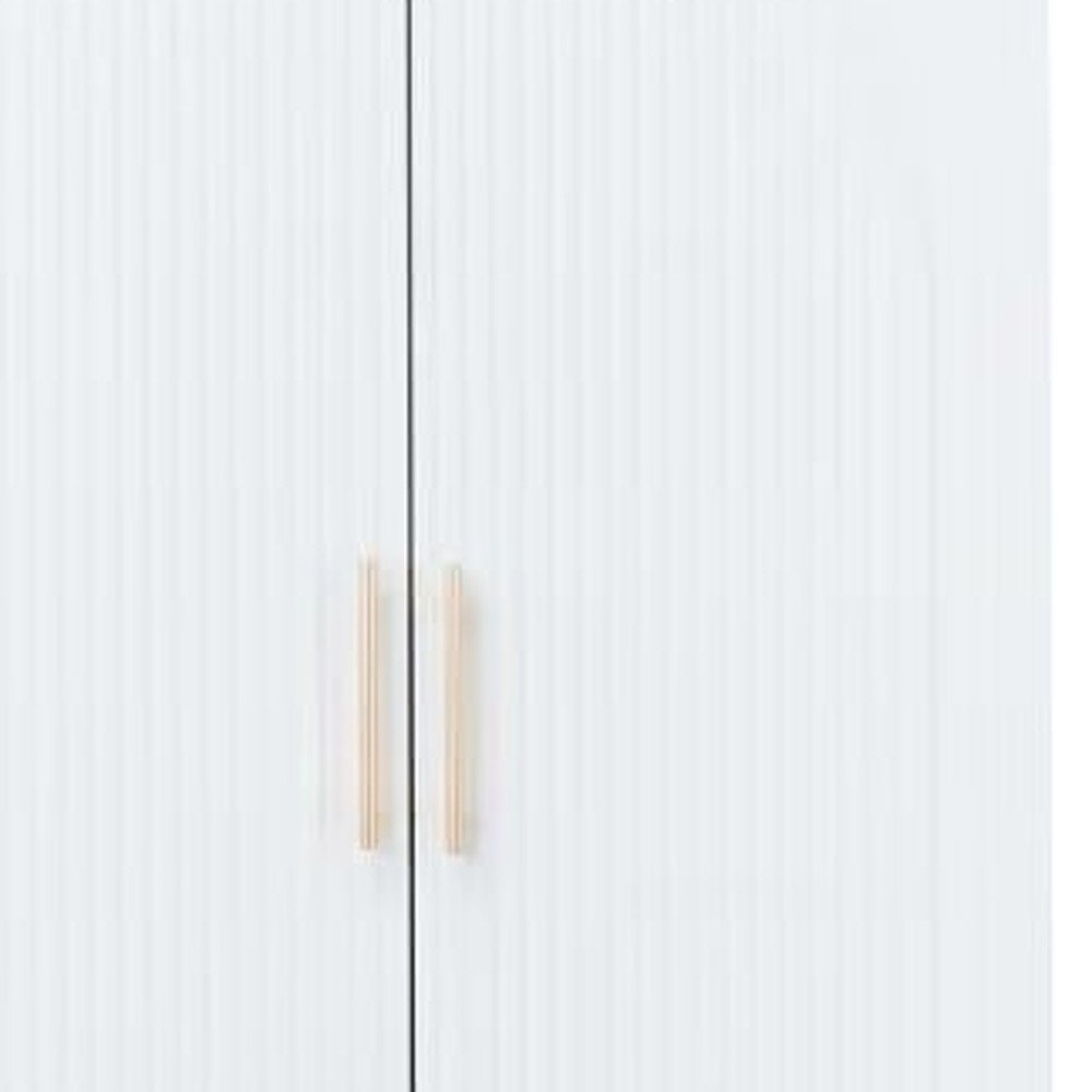 Make your room functional and visually enticing with this masterful 74-inch white carved geometric two door two drawer combo dresser. Versatile in use, this combo dresser is equipped with both drawers and doors for all your storage needs. This dresser is made from sturdy manufactured wood that is built to last. The chic white and gold coloration of this piece is neutral and will blend easily with most any decor. 74.21-inch h x 31.5-inch w x 20.39-inch d.