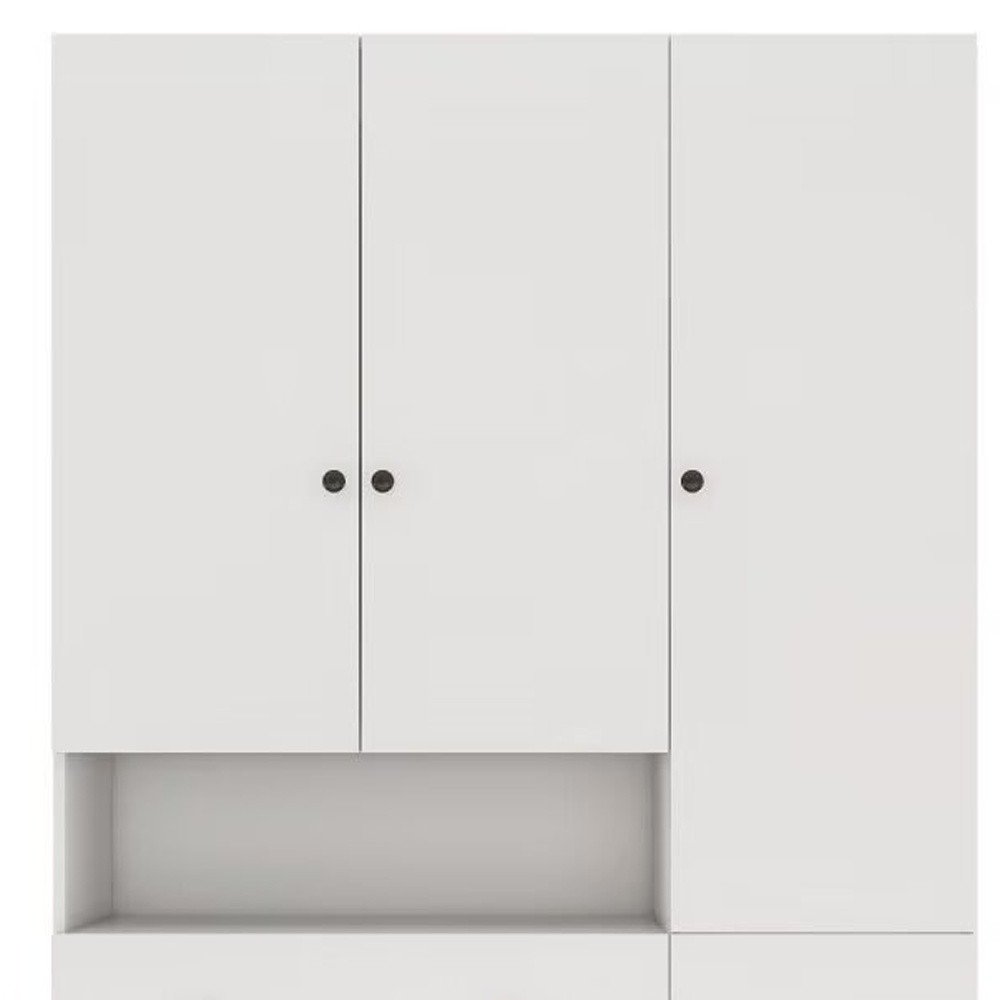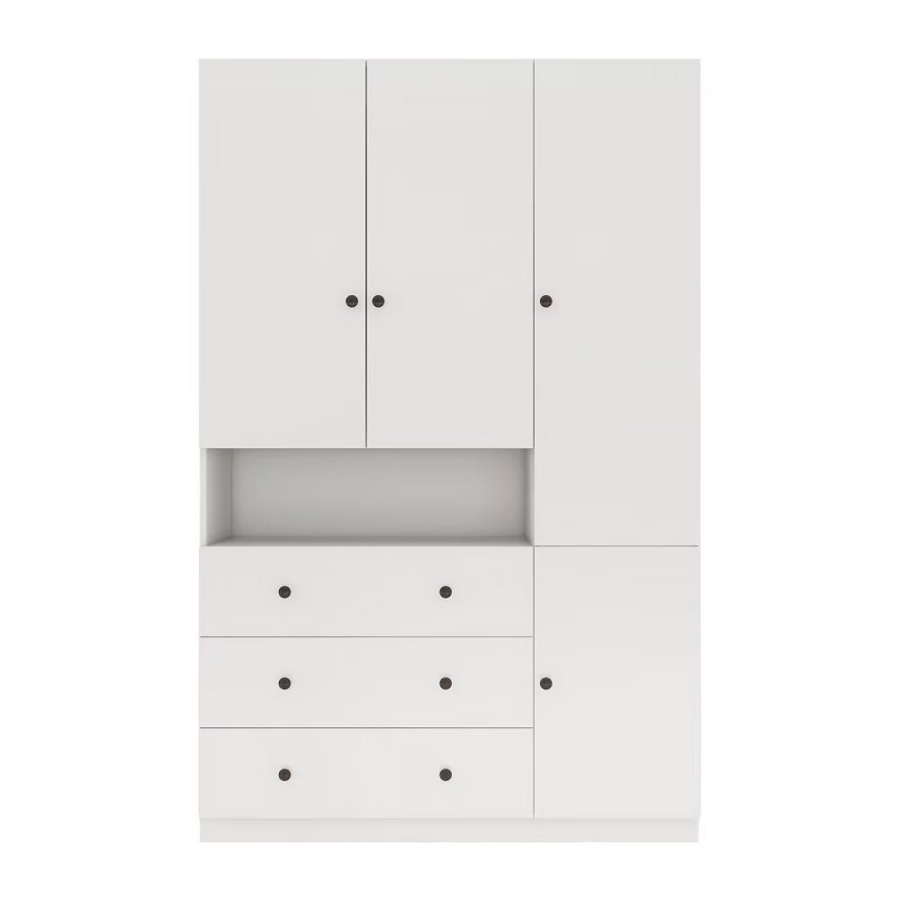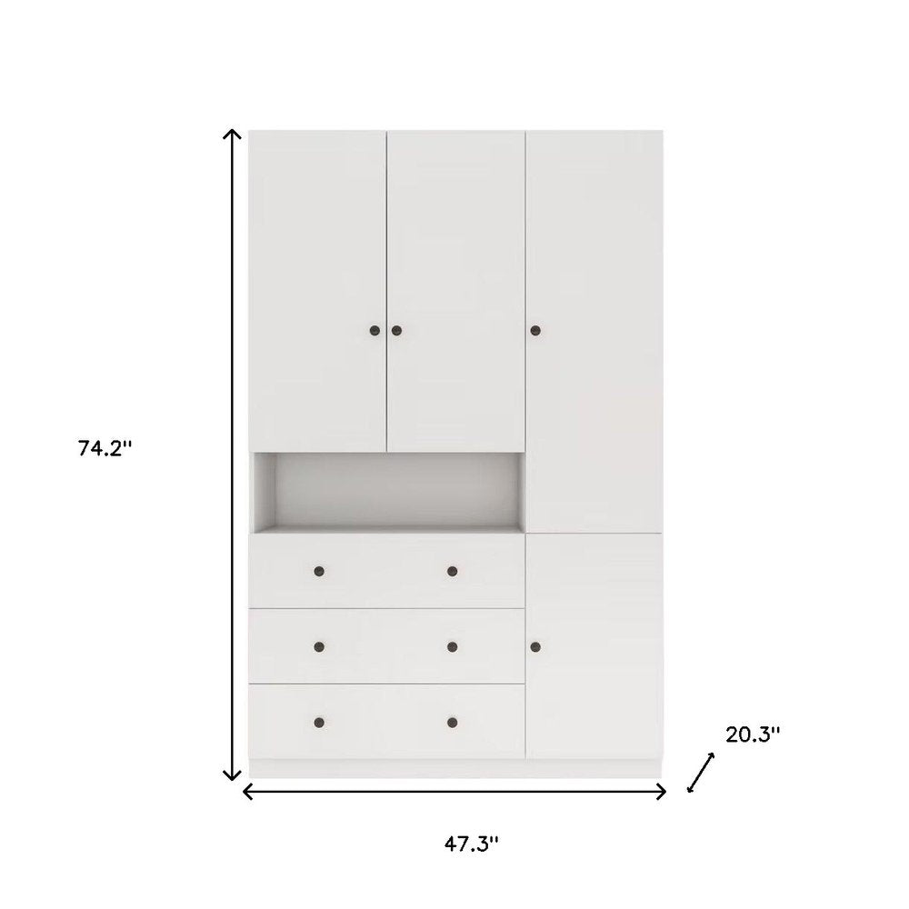 Enhance your room into a visually delightful and highly functional space with this 74-inch white four door three drawer combo dresser. Versatile in use, this combo dresser is equipped with both drawers and doors for all your storage needs. Equipped with three easy open drawers for practical and good-looking clothing storage. This dresser is made from sturdy manufactured wood that is built to last. The white coloration of this piece is neutral and will blend easily with most any decor. 74.2-inch h x 47.3-inch w x 20.3-inch d.