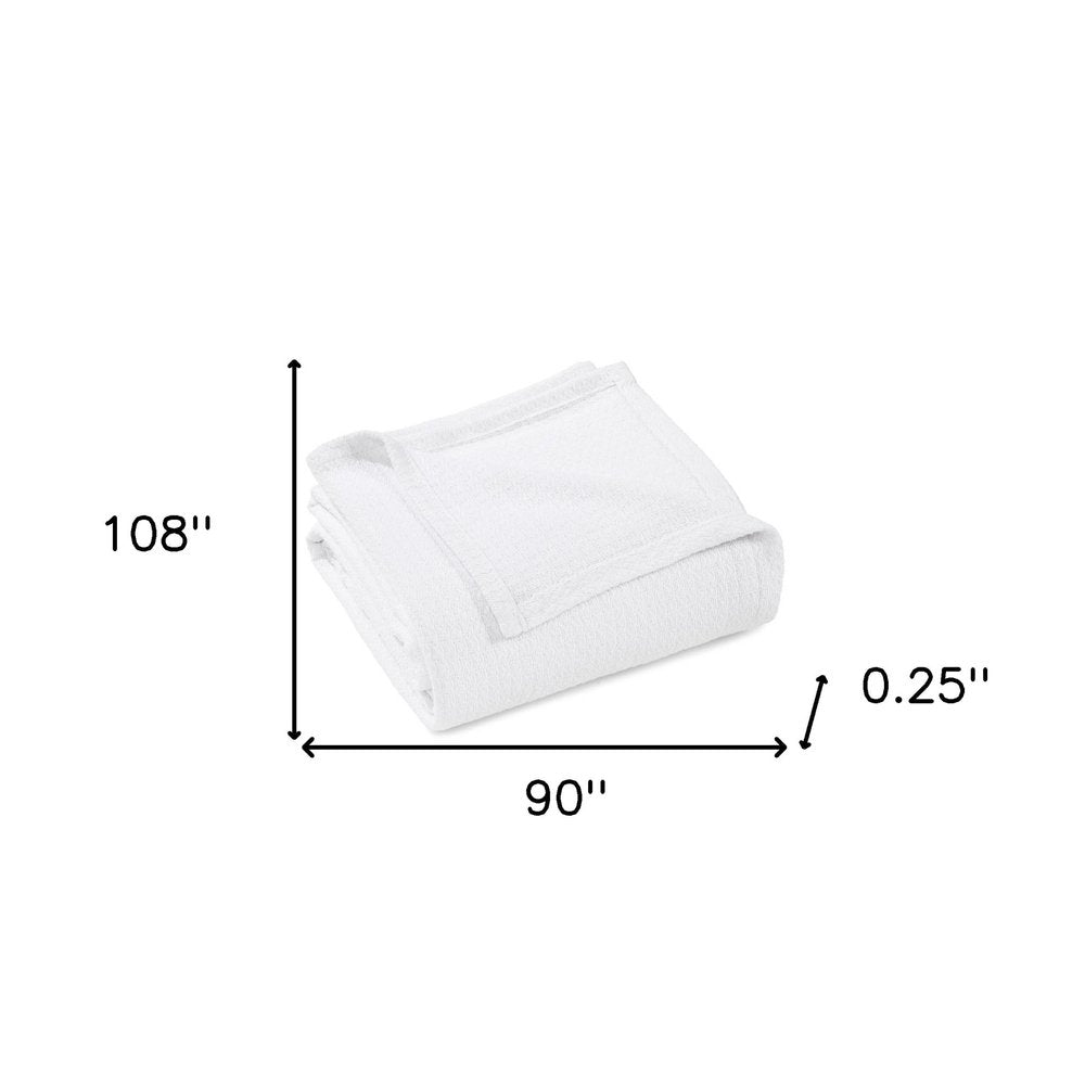 This king white cotton waffle weave honeycomb blanket is a cozy and stylish addition to your bed ensemble. Super soft, and featuring timeless style, this cotton blanket offers cozy comfort for a good night's sleep all year long. Enhance your space and the quality of your sleep with this soft and comfortable blanket that helps regulate your core body temperature, helps you to relax, and ultimately fall to sleep. 108-inch h x 90-inch w x 0.25-inch d.