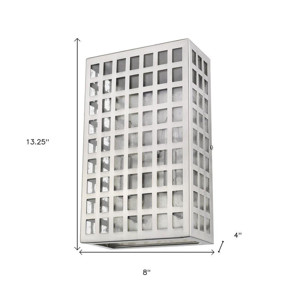 Though there are squares, Letzel is not square. A framework of steel in a continuous grid pattern combines with clear, seedy glass. Letzel is available in oil-rubbed bronze and satin nickel.