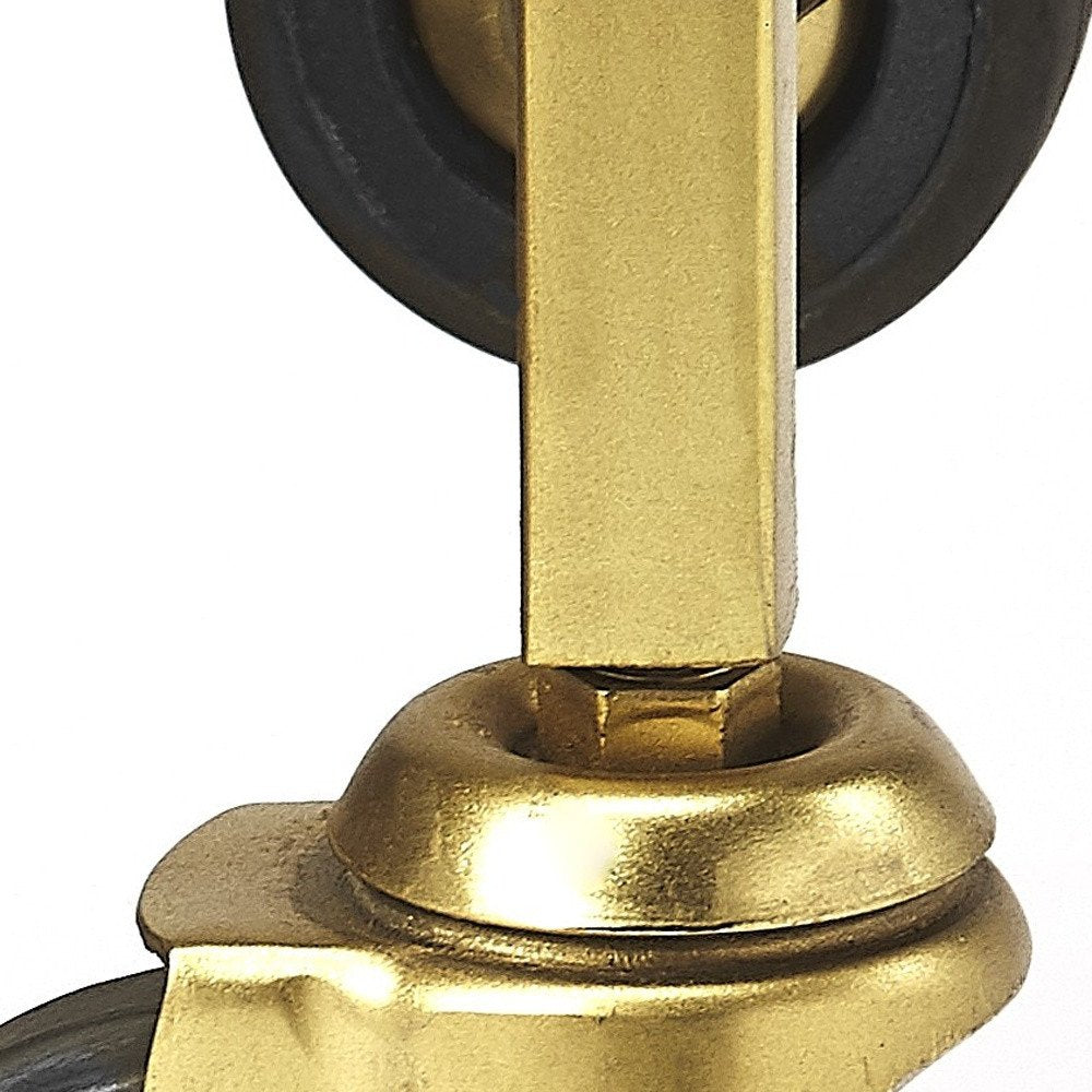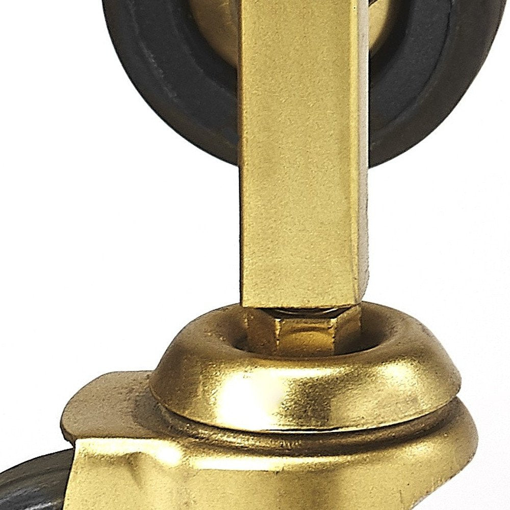 The Polished Gold Bar Cart is a combination of industrial chic and vintage. Covered in an elegant shiny gold finish, it is a perfect addition to your home and also doubles as a console table. Distinctively crafted the frame of the cart is made up of four metal beams that have been molded together to create a push handle on the top. A pattern of intertwined contorted metal squares attributes to its classy and elegant style. The cart is made up of three shelves, two glass shelves and one white stone shelf right at the bottom for heavy duty servings. Summing up the entire design are the brass caster wheels that provide the cart it's movable functionality. 33.5" x 20.5" x 13"
