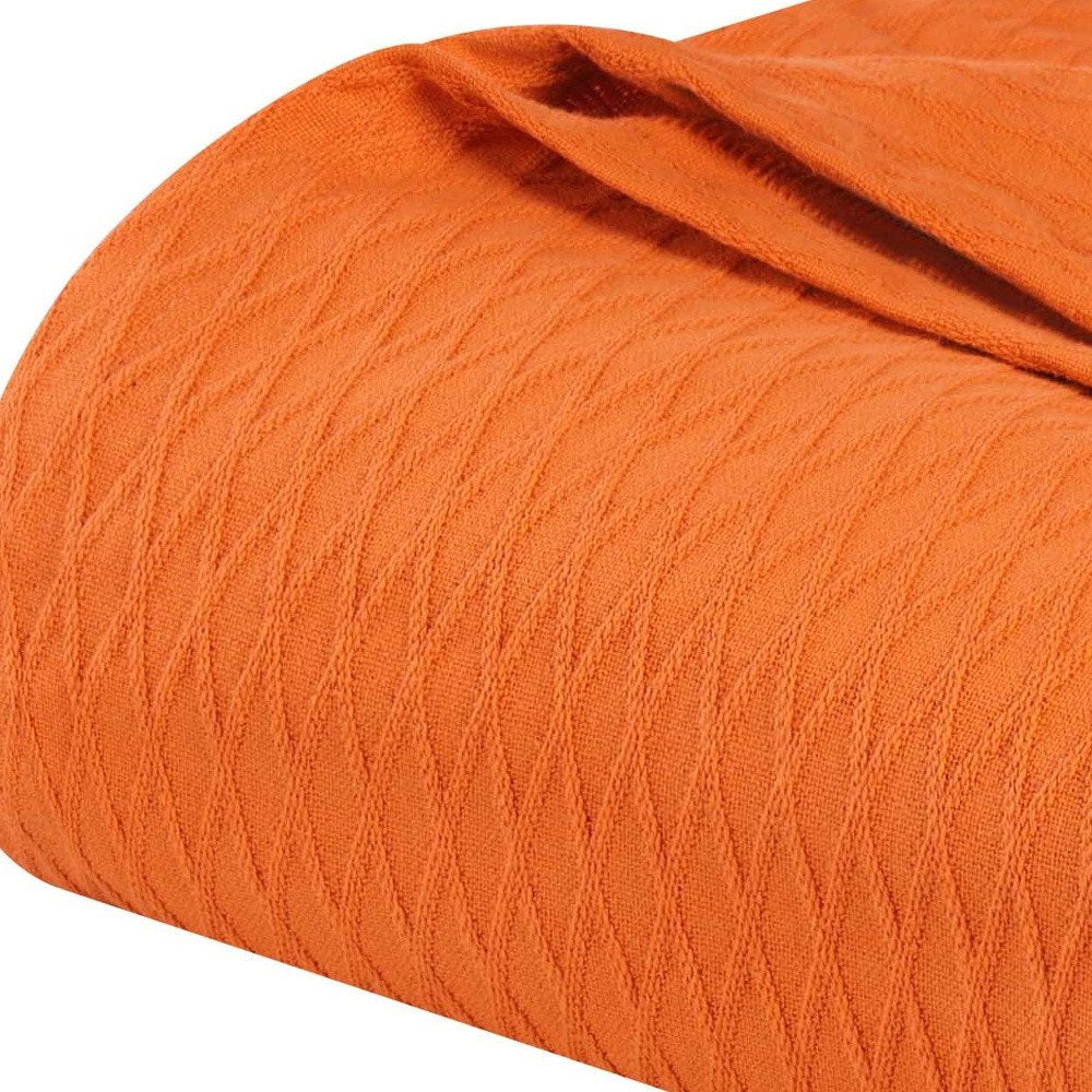 This queen burnt orange cotton woven geometric blanket is a cozy and stylish addition to your bed ensemble. Super soft, and featuring timeless style, this cotton blanket offers cozy comfort for a good night's sleep all year long. Enhance your space and the quality of your sleep with this soft and comfortable blanket that helps regulate your core body temperature, helps you to relax, and ultimately fall to sleep. 90-inch h x 88-inch w x 0.25-inch d.