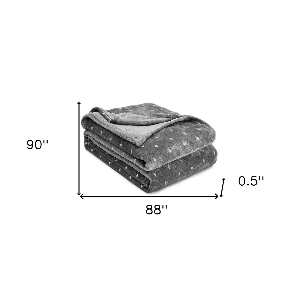 Queen Gray And Silver Fleece Woven Polka Dots Plush Blanket