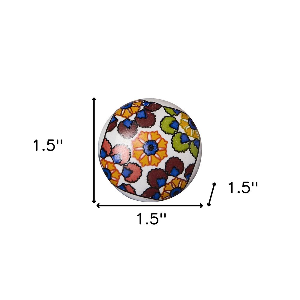 Transform your space quickly and easily with this set of eight blue and orange ceramic and metal drawer pull knobs. Improve the look of your old boring or builder grade furniture and cabinetry with these high-quality round knob traditional style knobs. Hand-painted by talented artisans, these knobs will add a touch of artisanal design. 1.5-inch h x 1.5-inch w x 1.5-inch d.