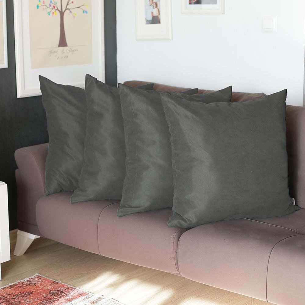 Unique and decorative, this comfortable set of four 22" x 22" gray polyester zippered pillow cover will leave a lasting impression. Ultra durable gray polyester has been used to make this decorative pillow cover set a beautiful look that will stand the test of time. This soft no fill pillow not only is decorative but made to be comfy and cozy all day long. Great to use on its own or mix with other decorations for the perfect look. A great decorative accessory for your favorite chair, to accent your sofa, or to use as part of your bed ensemble. 1" H x 22" W x 22" D