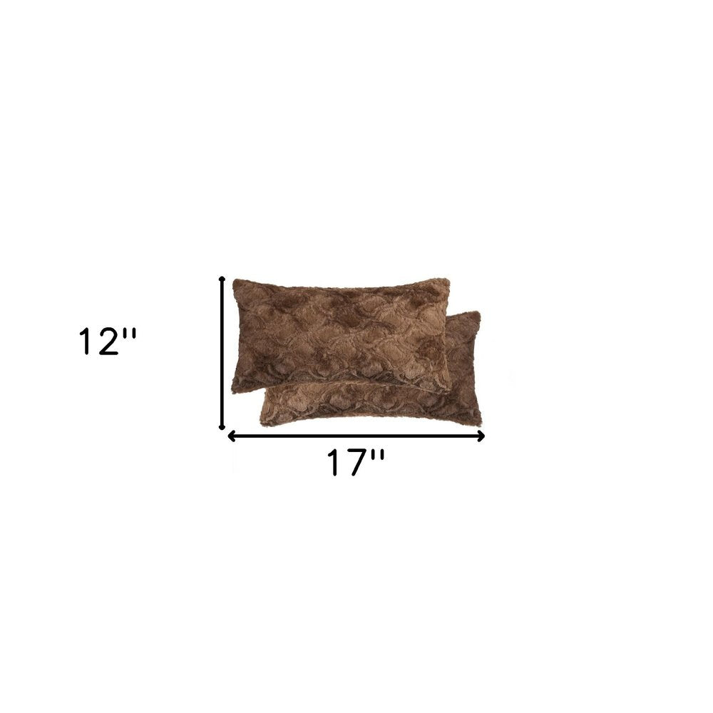 Set of Two 12" X 20" Brown Faux Fur Lumbar Throw Pillows