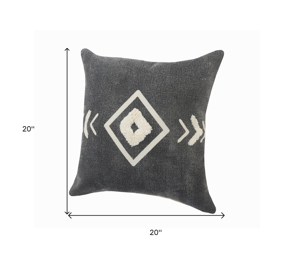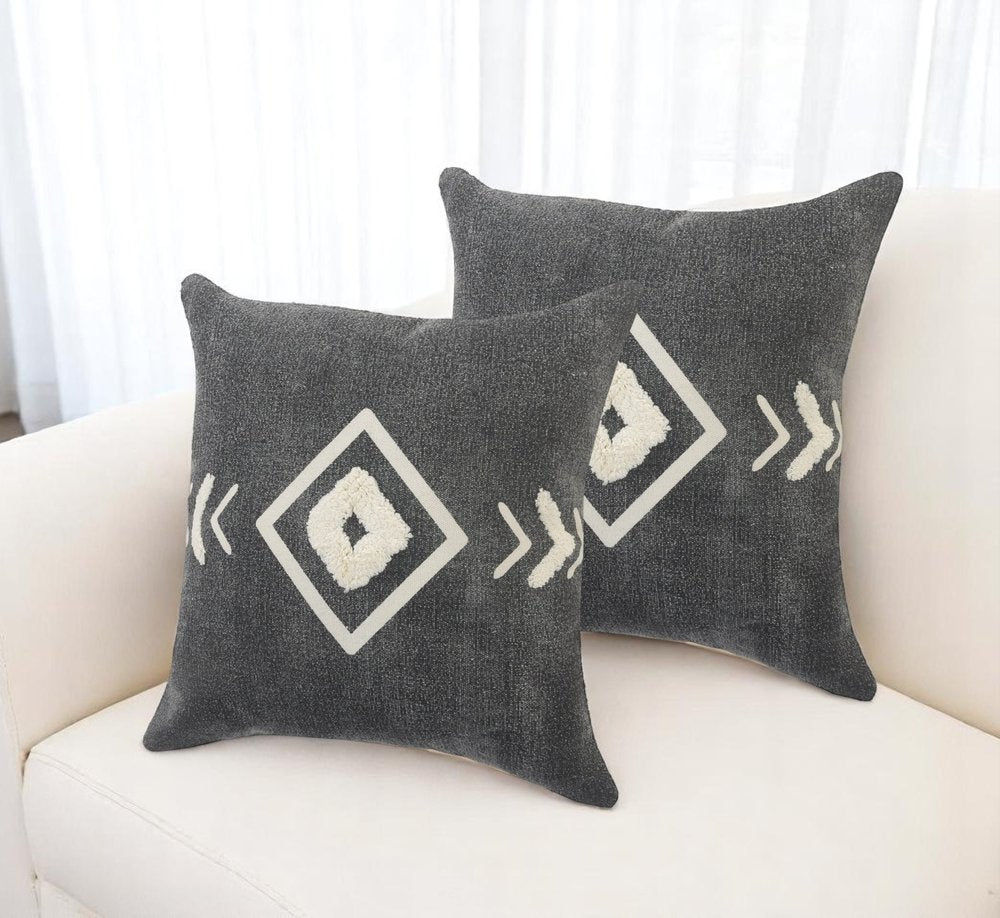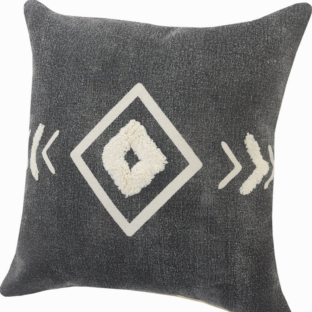 Unique and decorative, this comfortable set of two 20-inch black and white geometric cotton throw pillows with texture will leave a lasting impression. A stonewashed finish gives this pillow a distressed worn look and includes a fun geo tribal pattern and tufted fringed texture. This soft polyfill filled pillow not only is decorative but made to be comfy and cozy all day long. Decorative pillows are a great way to change up the look and feel of your space easily and quickly. Decorative throw pillows not only add color and dimension to your space but can be comfy and supportive when you are lounging and cuddling as well. 20-inch h x 20-inch w x 1-inch d.