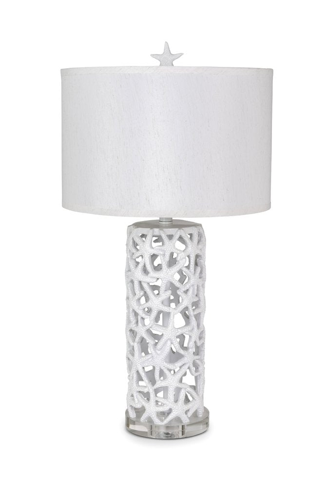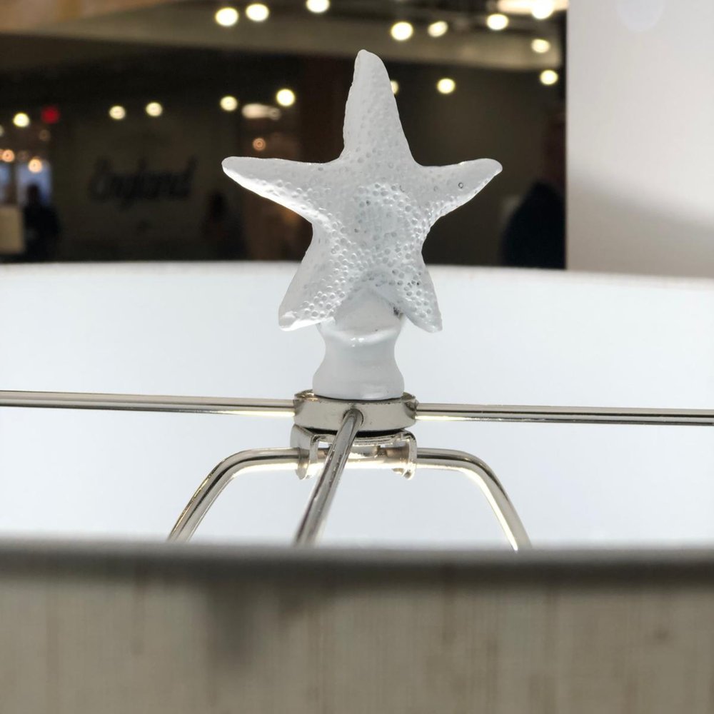 With this set of two 30-inch white starfish table lamps with white drum shades you can bring in some coastal design to any space along with adding some ambient lighting. The base of this lamp is made of white resin with sculptural starfish and piercing. The crisp white drum linen shade is a great compliment to this lamp and is complimented by a star finial as well. High quality design makes this a great lamp for not only lighting but accenting a room with style. These lamps are the perfect way to introduce some ocean sea life vibes to your space. 30-inch h x 16-inch w x 16-inch d.