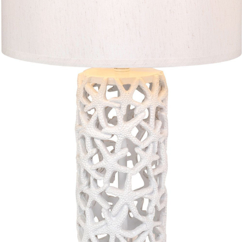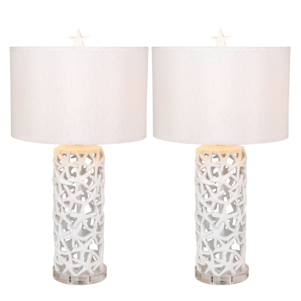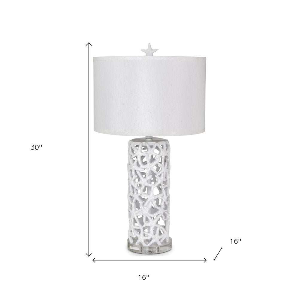 Set of Two 30" White Coastal Starfish Table Lamps With White Drum Shades