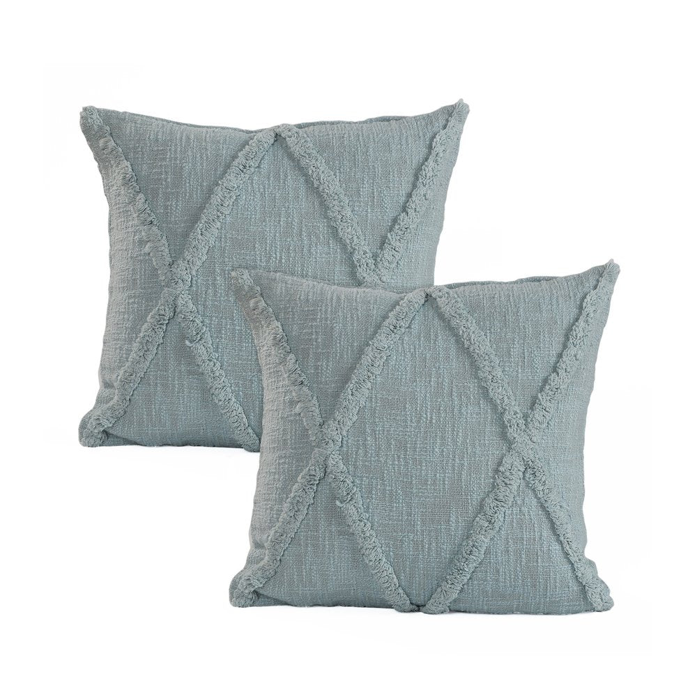 Set of Two Blue Diamond Cotton Throw Pillow With Fringe