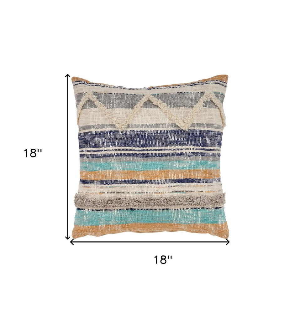 This set of two blue striped cotton throw pillow with fringe will add a beautiful decorative accent to your decor. The blue coloring of the extremely durable and long lasting cotton pillows will add dimension and texture to your space. For anyone that loves to decorate or accent their space with color and texture. A great decorative accessory for your favorite chair, to accent your sofa, or to use as part of your bed ensemble. 18-inch H x 18-inch W x 4-inch D