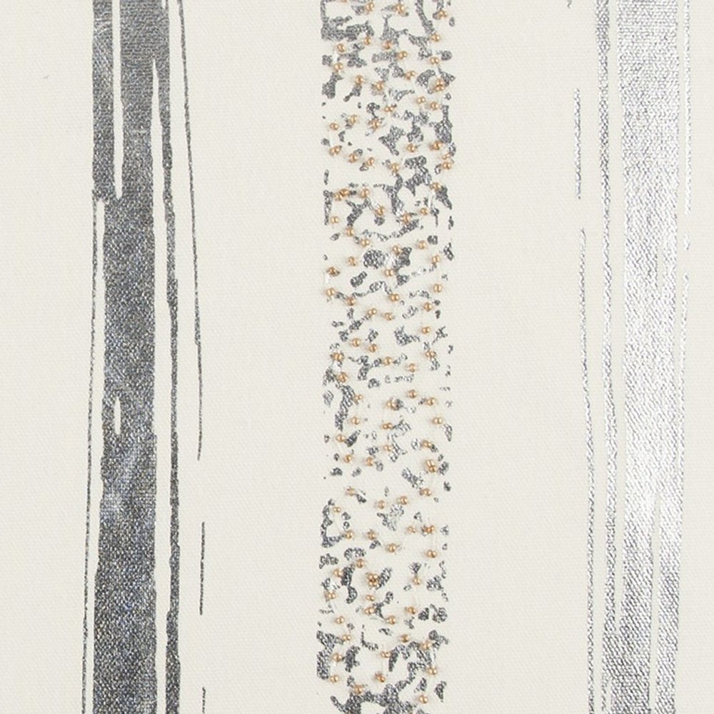 Combining glam and style in a sophisticated modern palette, this Silver and Gold Glam Stripe Beaded Embellished Throw Pillow will be a stylish accent to pair with your contemporary decor. The alternating stripes in silver foil and hand-beaded silver and gold embellishments over the white base give this pillow a dazzling dose of splendor. Being a poly-filled pillow, it does not compromise the plush and fluffy nature while the knife edge keeps all four corners sharp and clean to adorn the pillow with a polished look. The solid coordinating back with a hidden zipper closure offers a seamless finish and provides hassle-free cleaning. Enrich your rich decor of the living room with this gorgeous and glamorous throw pillow to be perfectly suited with a variety of vibrant themes and styles. 20” x 20” x 6.25”