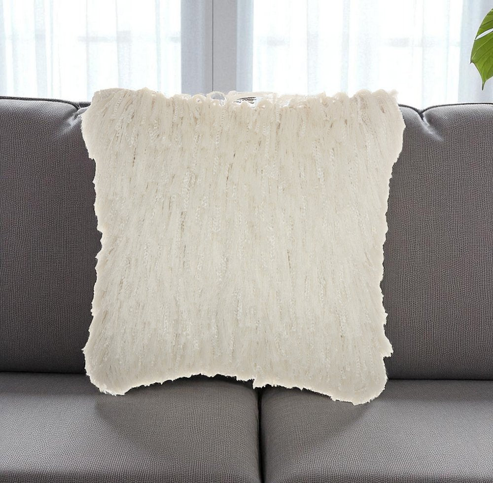 Soft White Shag Accent Pillow