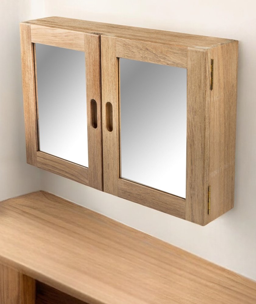Traditional Solid Teak Double Door Mirrored Medicine Cabinet