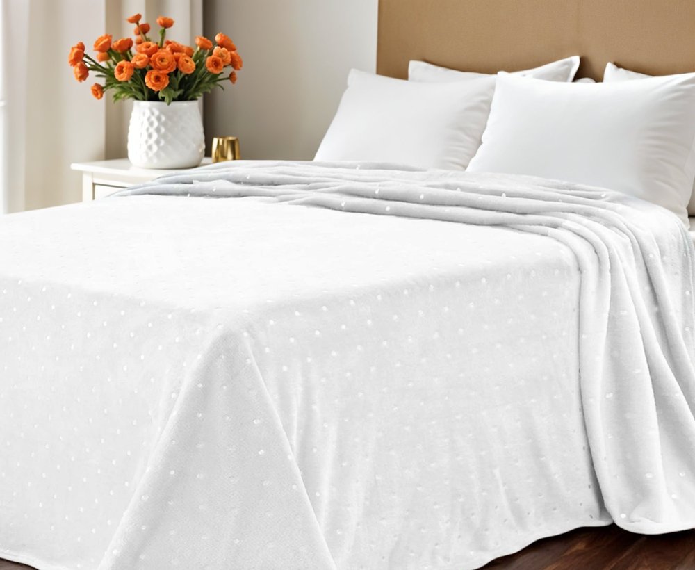 Twin Ivory Fleece Woven Polka Dots Plush Blanket