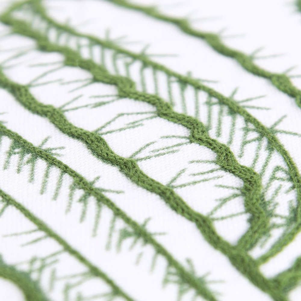 Combining a naturalistic design with an amusing quote, this White Green Climb A Cactus Throw Pillow is a quintessential addition to your modern or contemporary abode. The moss green cactus artwork with a whimsical sentiment that says ‘Climb A Cactus’ gives the pillow a fun flair, while the contrasting white background perfectly highlights the print. The embroidered details provide texture to the piece, and the hand-tied tassel poms on the sides resemble tree spikes, giving the pillow a quirky feel. Constructed with a white cotton duck material, the back of the pillow is solid with a hidden zipper closure for convenience. The pillow comes with a polyfill insert that gives it a soft and fluffy appearance. Embody nature in your home but with a twist by layering this decorative throw pillow amidst your modern or contemporary décor. 20” x 20” x 6.25”